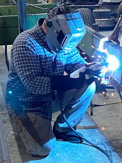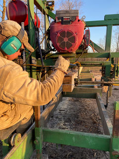 Although Jason has taken on the lions share of the work, it has truly been a family affair as we all have helped him out as best we could. All the wood that was used in the barn, Jason put through our sawmill. When his sawmill wasn't long enough for a 26' beam, he dismantled it and welded on 10 extra feet. For the 6"x10" beam trusses he cut steel and welded his own brackets and plates. Each beam took 176 lag screws to form the trusses. These trusses were set in place piece by piece with only a man lift. Needless to say, I cleared out Tractor Supply's lag screws in 3 counties. Sorry, and thank you to all who had to wait for another shipment.